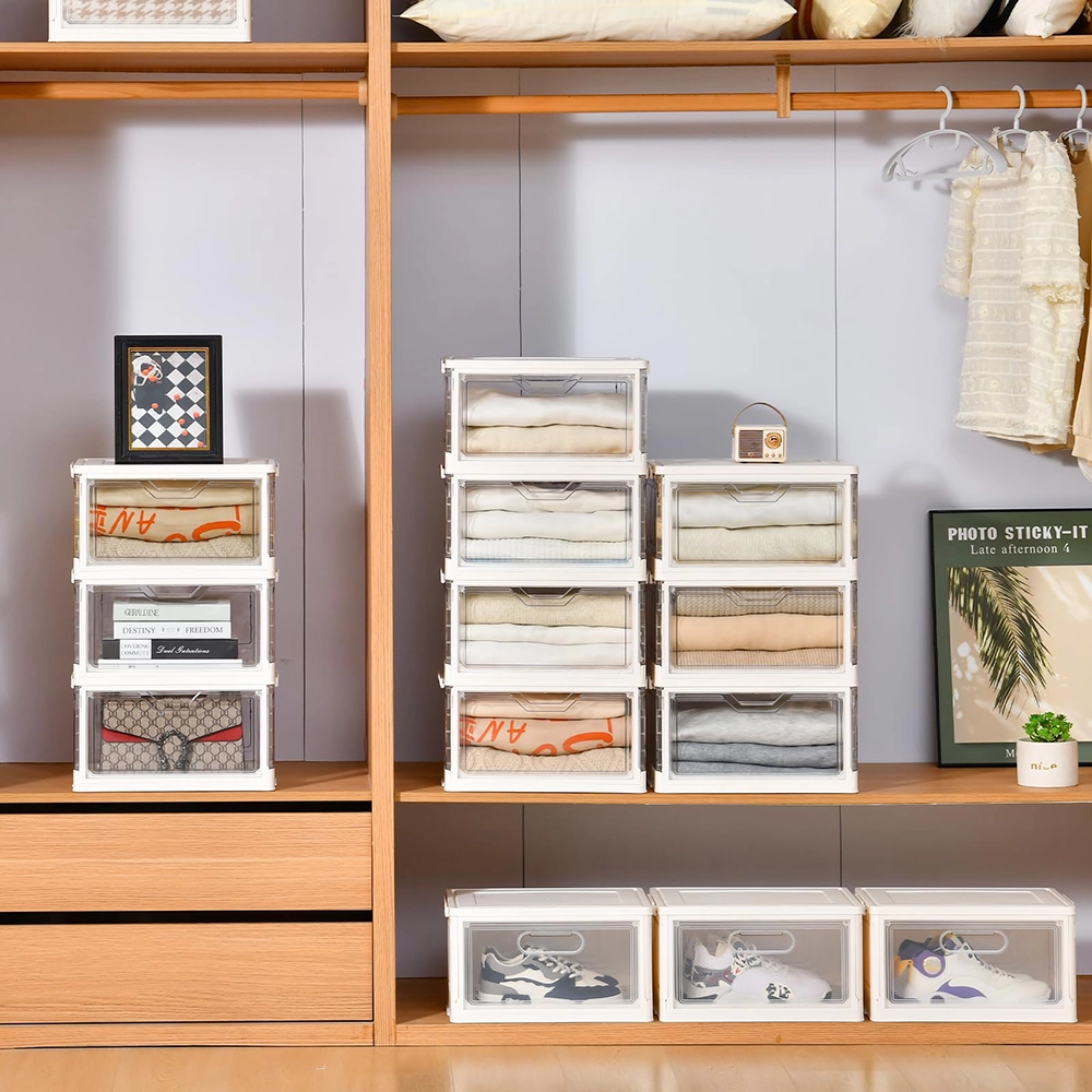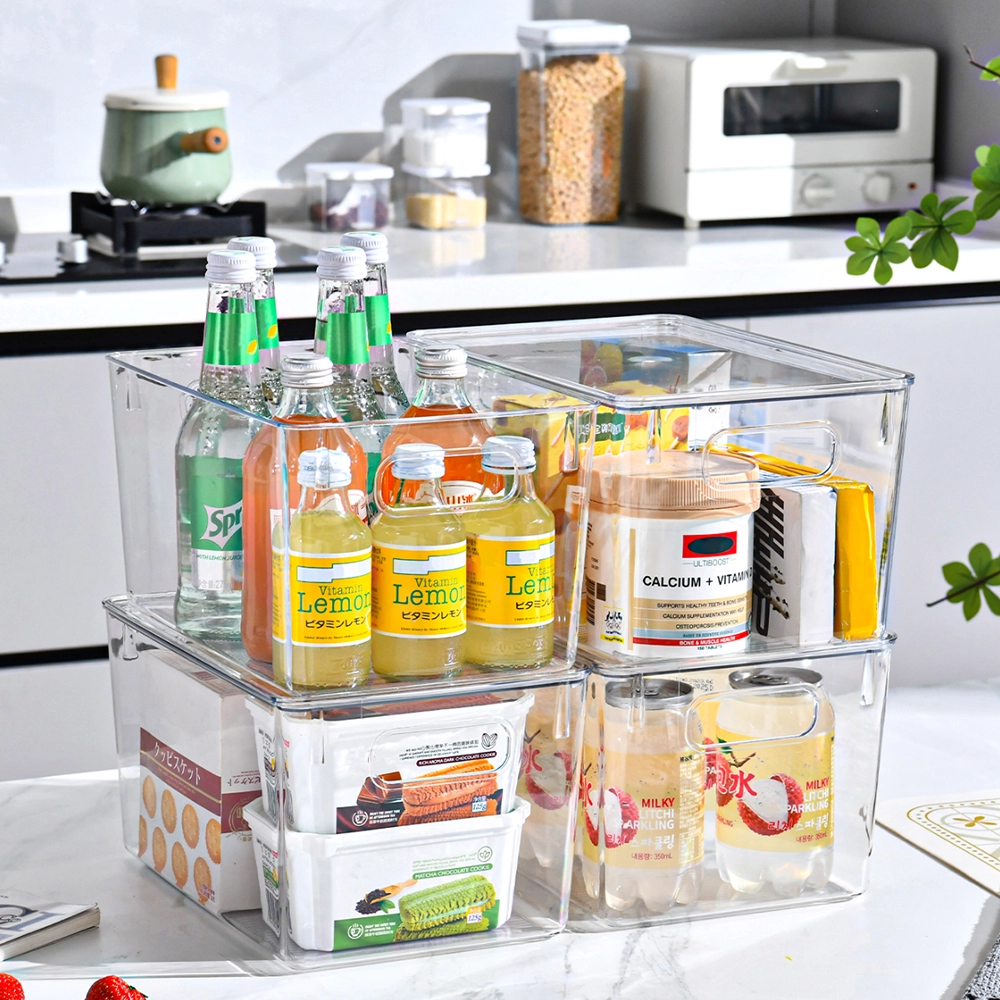 Keep your space organized with 6 clear, stackable storage bins featuring lids and handles, perfect for office, bedroom, or study room storage.