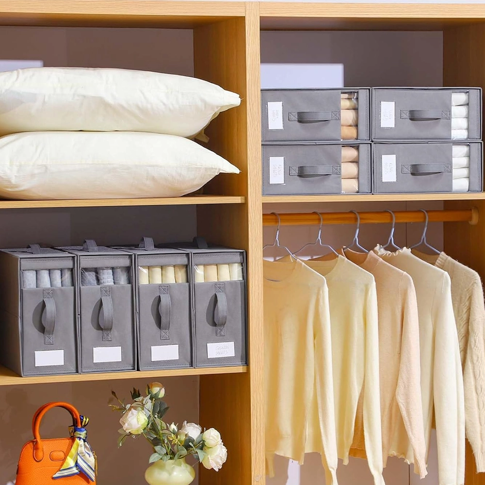 Maximize closet space with 8 foldable linen organizers, perfect for storing queen or king-size bedsheets, duvet covers, and pillows neatly and accessibly.